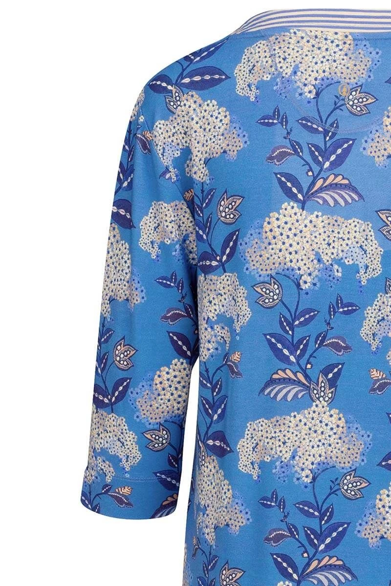An easy-to-wear kaftan dress in the beautiful Flora Firenze print with the color cobalt blue. Made of soft cotton voile. The neckline is finished with the Little Sumo Stripe design. Perfect for holidays in warm weather or as a beach cover-up on sunny beach days.