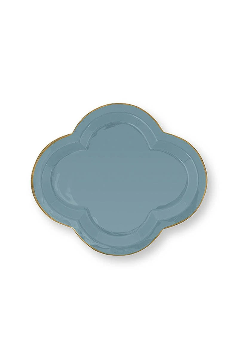 Brighten up your interior with this large enamelled tray in the shape of a clover. The tray is finished with a golden edge for an extra luxurious look.