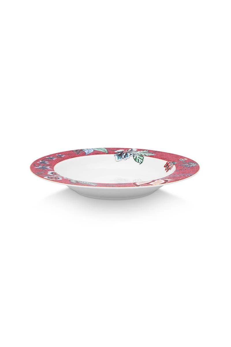 Brighten up your table with this deep plate from the Flower Festival collection. The plate has a floral design with imaginative red and pink chintz flowers with light blue and green leaves. Ideal to use as a soup or pasta plate.