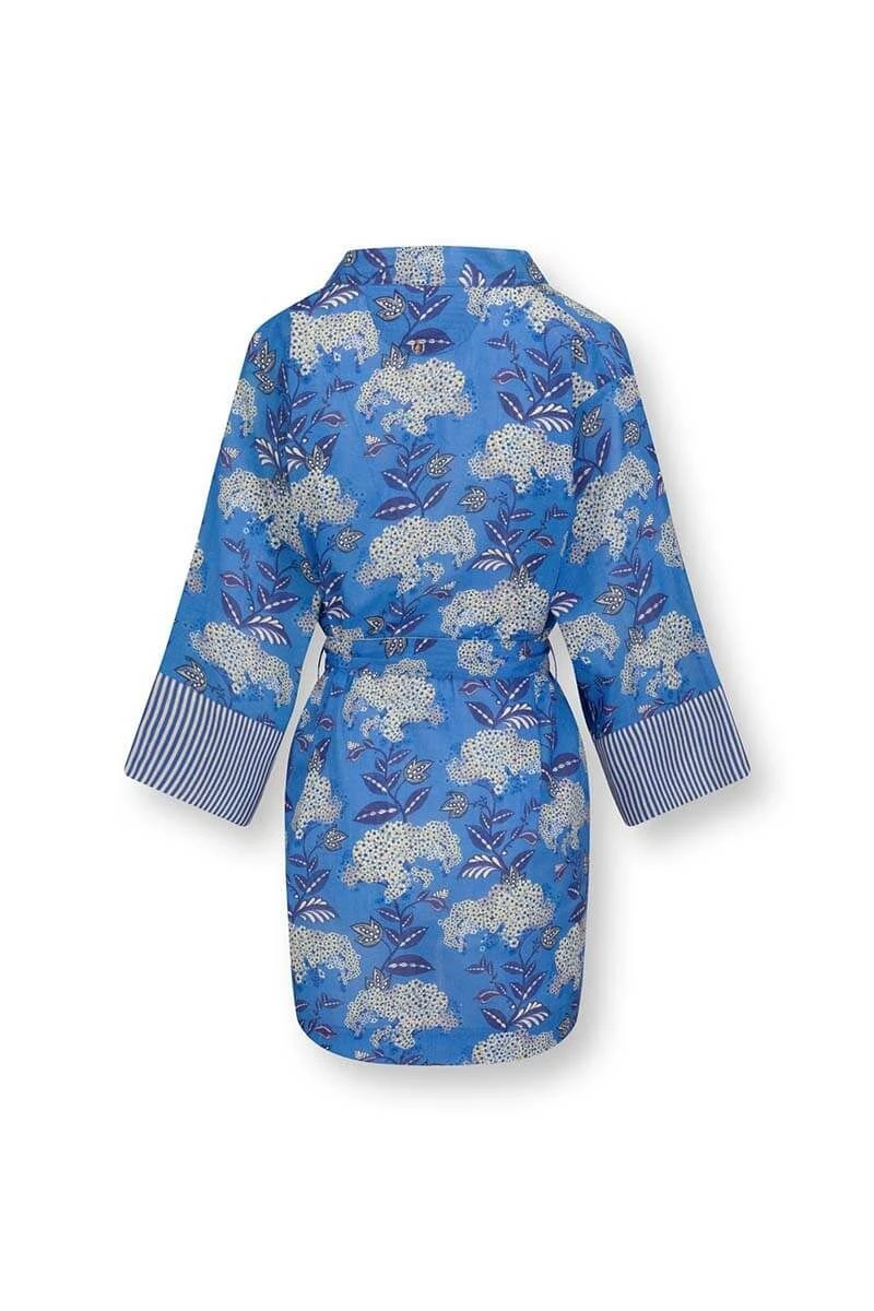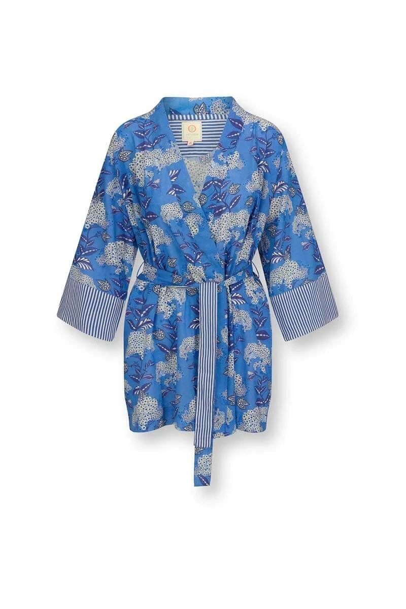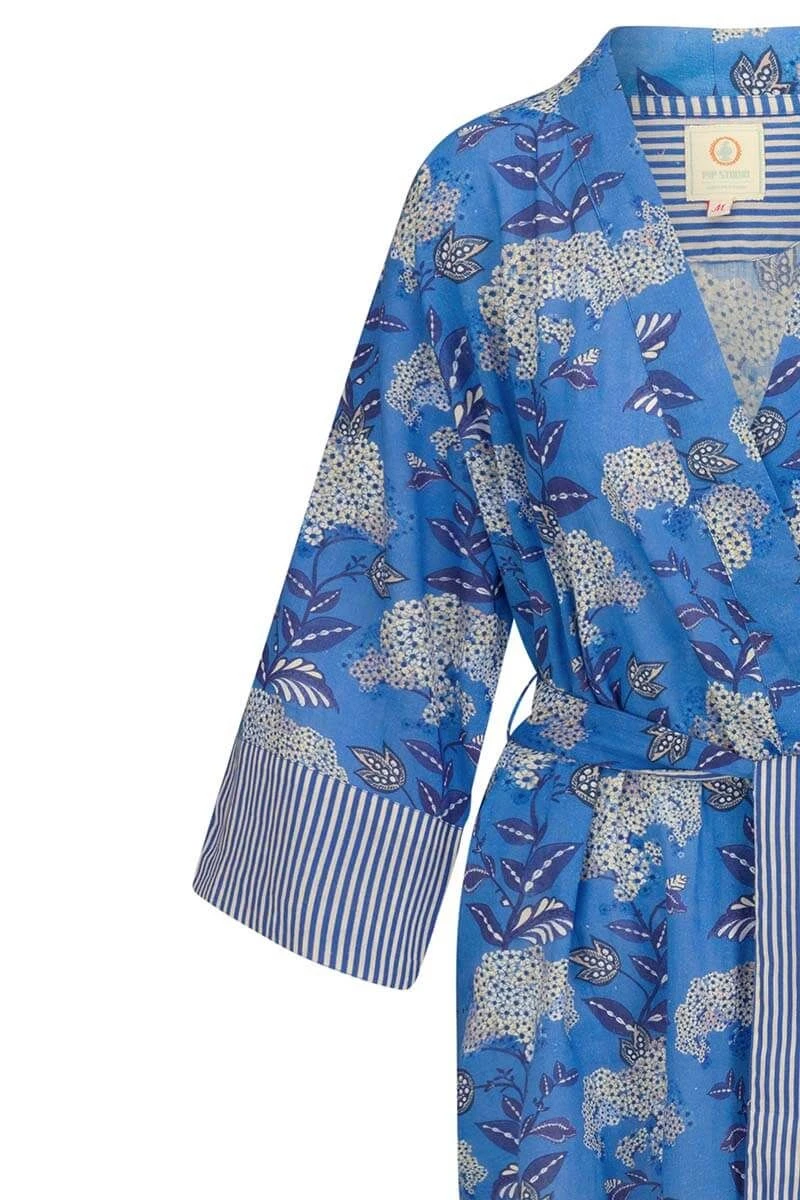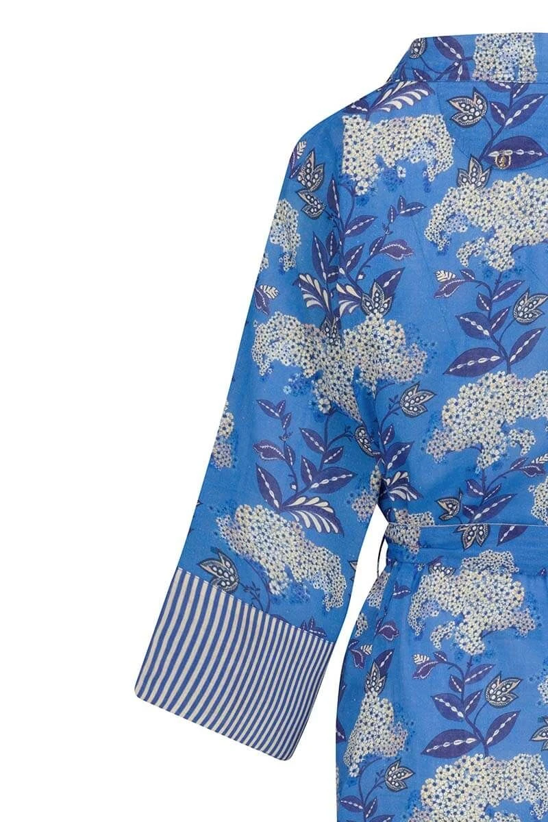 The short kimono is your summer must-have! The beautiful floral print Flora Firenze immediately brightens up your day. The cuffs and belt are finished with Little Sumo Stripe design. Imagine yourself on a sunny day on the terrace. This cobalt blue kimono will take you to those summer dreams and is perfect for all occasions.