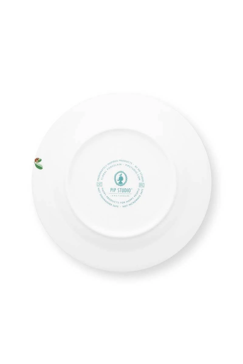 This dinner plate is decorated with a yellow design and golden details. Combines beautifully with other items from the La Majorelle collection.