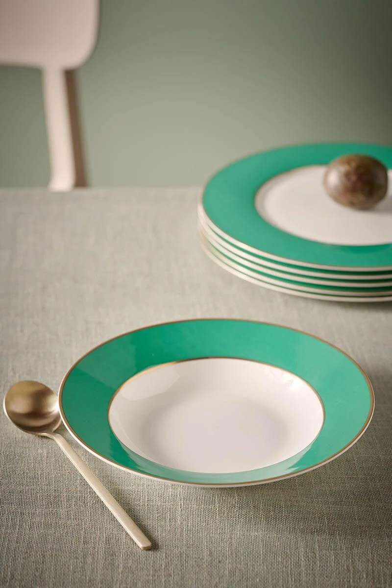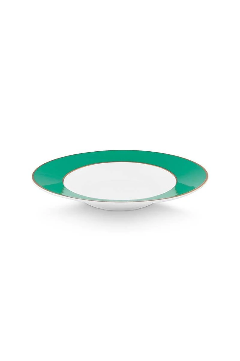 This deep plate has a green design with a white background in the centre. The plate is finished with golden details and perfect to mix with the other plates of this collection or our Heritage collection. The Porcelain is made of bone China, a high-quality thin porcelain with a sophisticated design. Also available in sizes: 17 cm, 23 cm and 23.5 cm. Have a look at the full Pip Chique collection for more inspiration.