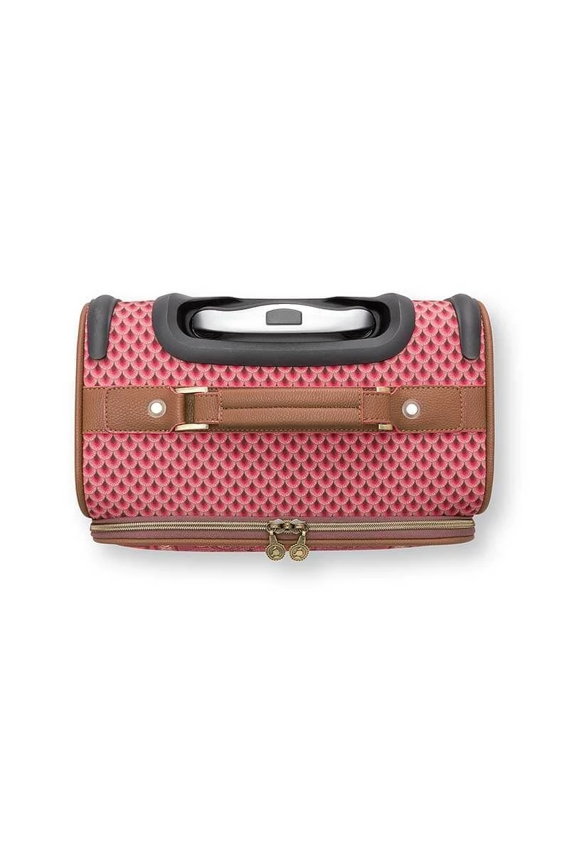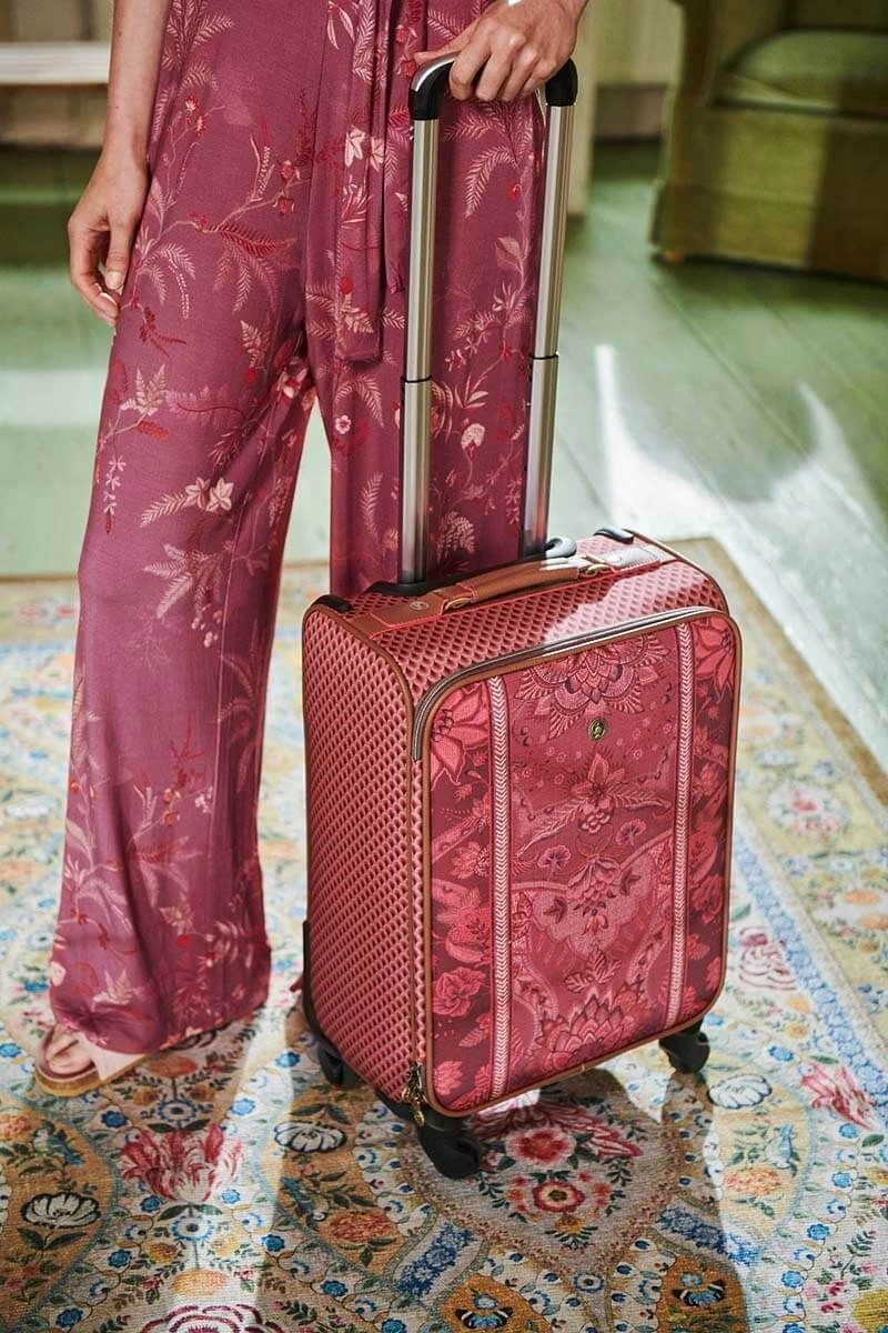 The new trolley on wheels in the color dark pink with the Kyoto Fesitval design is a great trolley for traveling. This suitcase has a large storage compartment for your clothes and shoes, in which you can find 3 side pockets. One with a zipper and two with an elastic band. The outer and inner material are water repellent, so it is perfect for any weather forecast. At the bottom of the suitcase you will find 4 wheels, each of which can rotate 360 ​​degrees. The size of the suitcase makes it suitable for handluggage in the cabin.